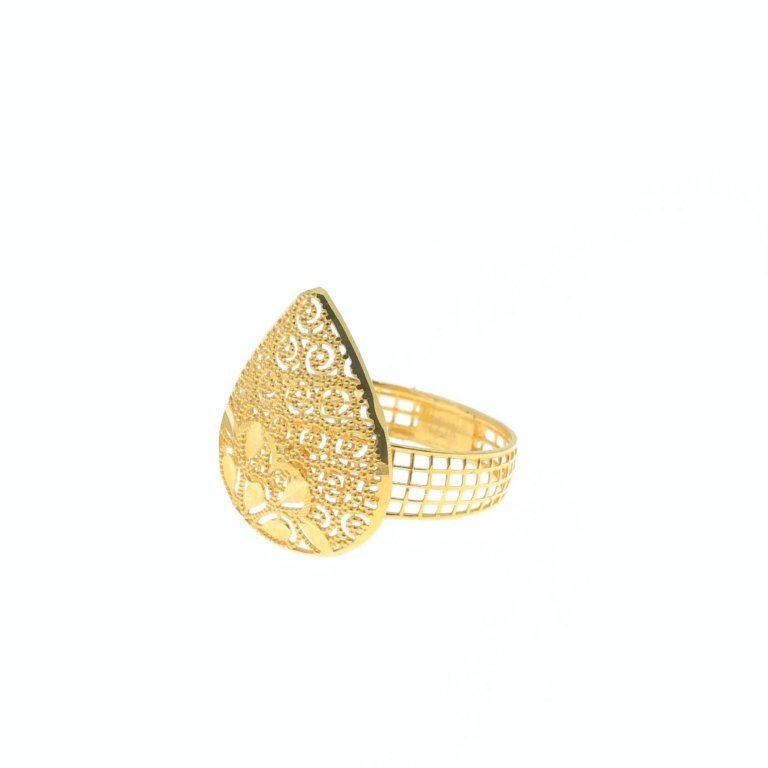 The beloved classic “teardrop” design with a modern twist. This ring features intricately detailed openwork motifs where spiral lines intertwine with delicate leaves at the bottom.